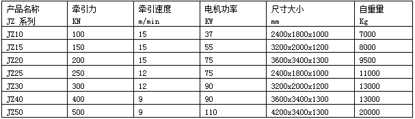 JZ系列摩擦式雙滾輪絞車參數(shù):
