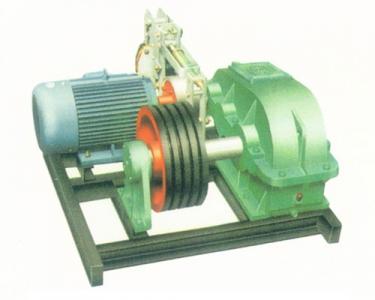 多繩槽曳引機的卷筒為一多平行繩槽的滾輪,用于和滑輪組的組合使用,從而實現(xiàn)牽引。多繩槽曳引機的拉力相對比較大。但要配大功率的電動機。