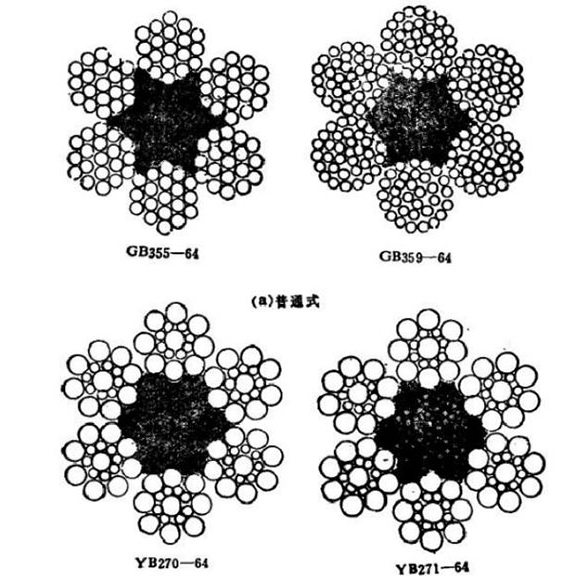 復(fù)合式鋼絲繩是由不同直徑的鋼絲繩6股或多股與一根含油的有機(jī)繩心或無機(jī)繩心寧饒而成。
